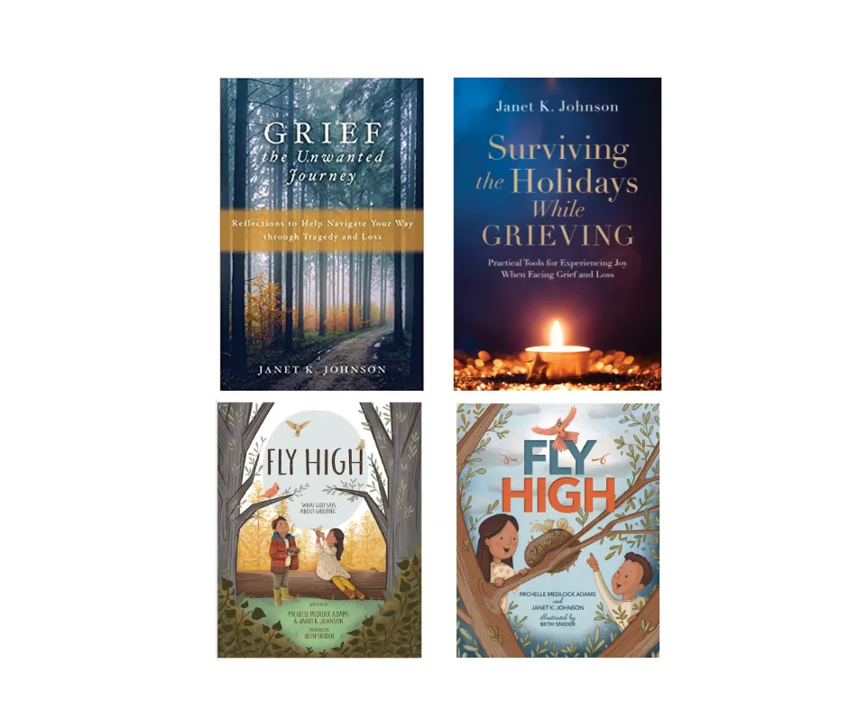 While experiencing grief through the loss of her son, brother, brother-in-law, parents, and very close friends, Janet learned to lean on God. She dove into scripture, the promises of God, the love of Christ, and found the cloud of heaviness lifting. Since then she has written, Grief the Unwanted Journey (an uplifting devotional), Surviving the Holidays While Grieving (filled with experiential, spiritual, and growth through remembering and celebrating those who have been lost), and two children's books, Fly High Understanding Grief with God's Help and Fly High (General Market), in addition to being a part of many compilations and anthologies. Her spirit of joy permeates her life including her presentations to those who are struggling with their own losses.